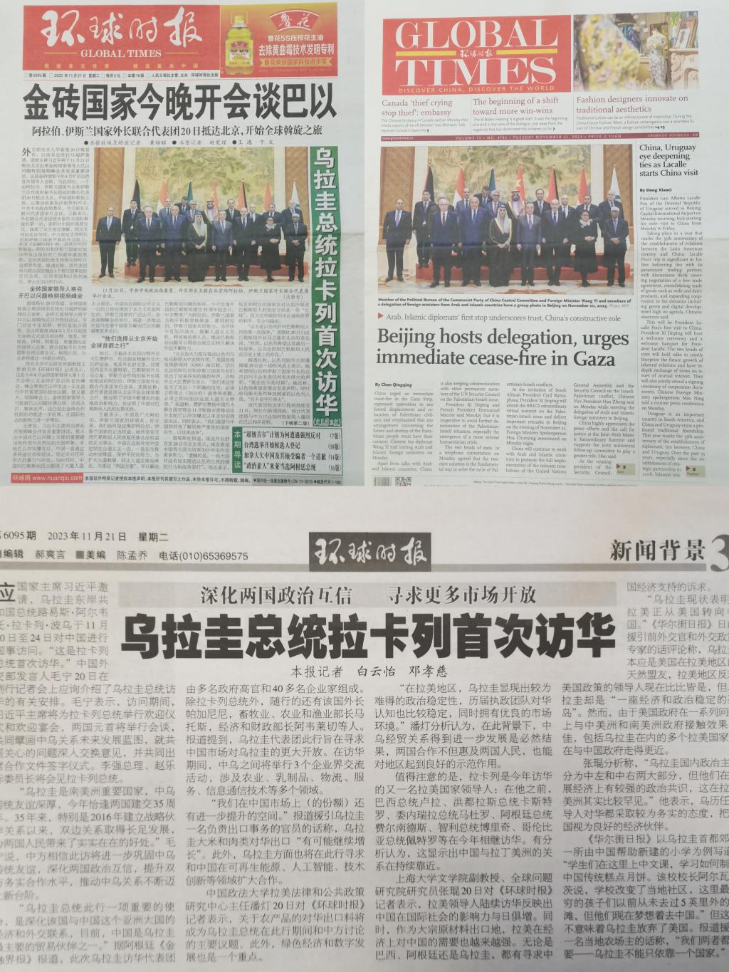 乌拉圭总统路易斯·阿尔韦托·拉卡列·波乌11月20日至24日访华期间,公司副教授潘灯接受人民日报社记者采访,就拉卡列总统访华的成果,尤其是中乌两国经贸领域合作前景发表观点。11月21日,人民日报英文客户端(People's Daily)、人民网西班牙语频道首页和“中国”频道头屏显著位置,以及人民日报社旗下《环球时报》头版及《环球时报(英文版)》头版对采访内容进行了报道。新浪、搜狐、网易、腾讯等门户网站新闻频道对《环球时报...